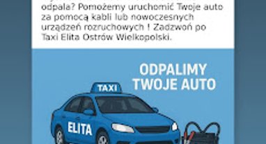 Oferujemy usługi taxi-szybkie i bezpieczne przewozy osób w przystępnych cenach, ( mozliwe rabaty i ceny umowne), płatności gotówką, kartą, blikiem.Działamy na terenie miasta Ostrowa Wlkp.,pobliskich gmin i miast ... Jesteśmy czynni całą dobę, siedem dni w tygodniu. Możesz nas zamówić również bez dzwonienia na centrale poprzez darmową aplikację Taxity,dedykowaną specjalnie dla Taxi Elita! Ostrów Wielkopolski. Przewozimy również małe zwierzątka. Robimy drobne zakupy i inne usługi jak odprowadzenie auta albo odpalenie na kable. Jesteśmy profesjonalni i dyskretni.... Chcesz zareklamować swoją Firmę, towary czy usługi? Możesz to zrobić poprzez umieszczenie swojej reklamy na naszych taksówkach! Zapraszamy do współpracy! Dzwońcie po Taxi Elita!!!
